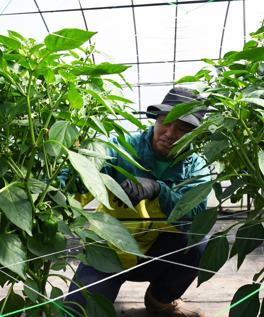 私たちは地域の美しい自然環境と恵まれた気候の恩恵を受け、手間ひまかけておいしくて栄養豊かなピーマンを育てることにこだわっています。