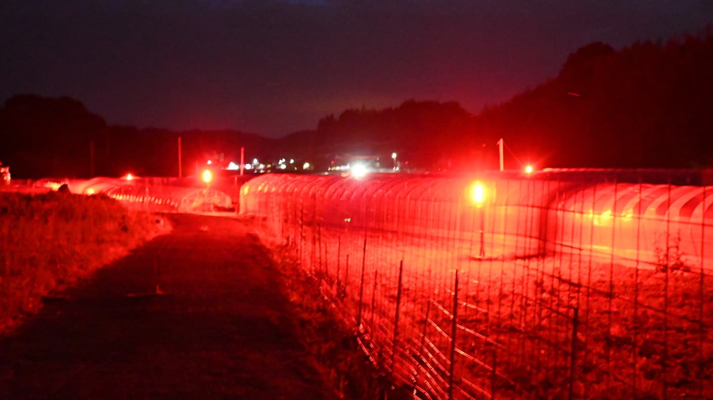 赤色LED防虫灯の点灯によってアザミウマ類の視認性が低下するため、作物に照射することで寄せ付けないようにする効果が期待出来ます。